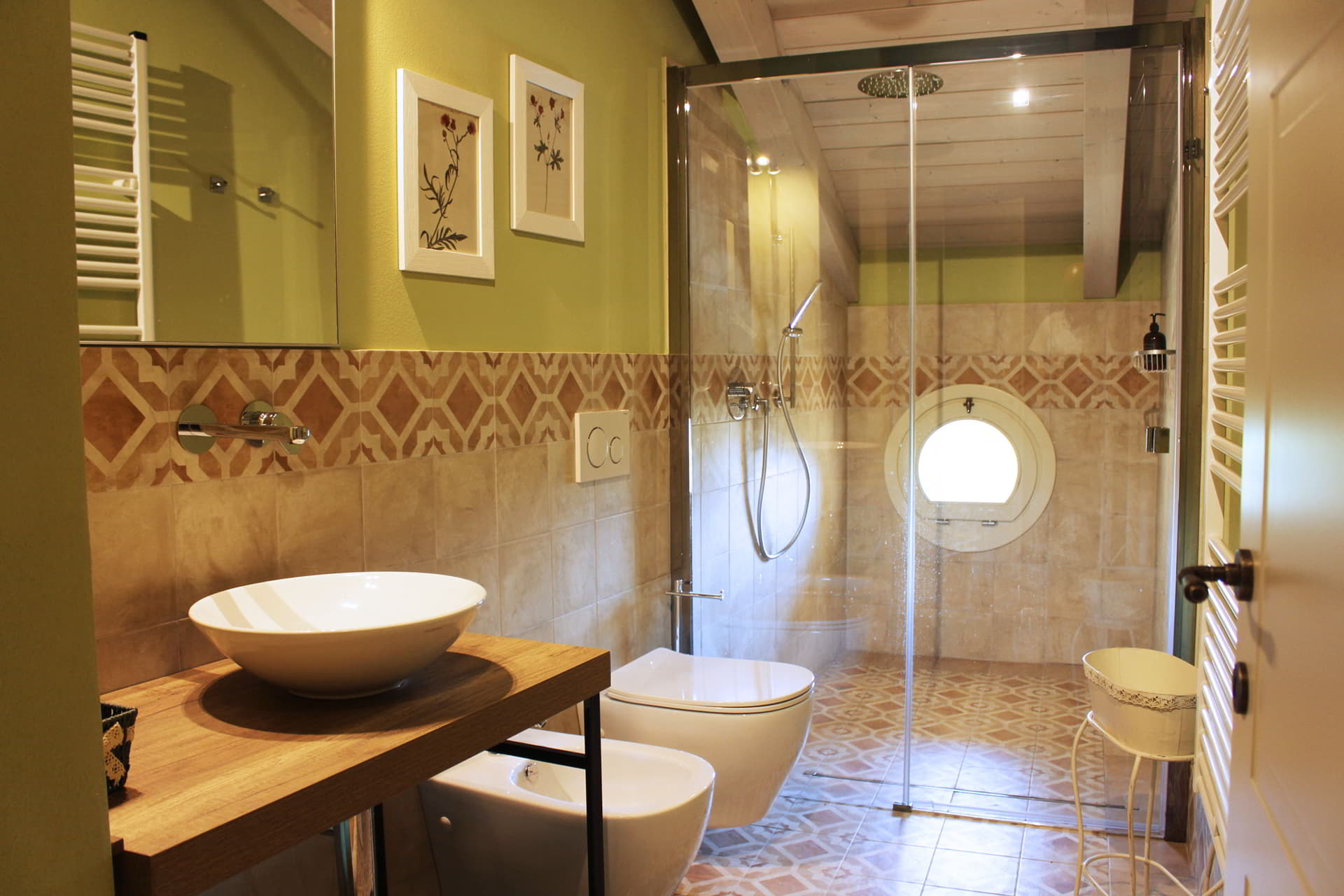 Casa San Grato is a place where traditional and contemporary styles blend effortlessly with a range of bright colours. Our aim is to offer absolute comfort while giving the interiors a distinctive character that combines refinement with classic charm. The living and dining areas, with large windows that flood the spaces with light, open onto sweeping views of the valley, set against the vivid shades of the pool. On the opposite side, the spacious kitchen—designed to meet every culinary need—stands out for its versatility and practical features. The villa’s bedrooms, painted in delicate tones, envelop guests in a warm embrace that encourages restorative sleep. Each room is named after a local wine, celebrating Piedmont’s winemaking heritage and deepening the villa’s bond with its territory. For added privacy and comfort, every room features its own en-suite bathroom.