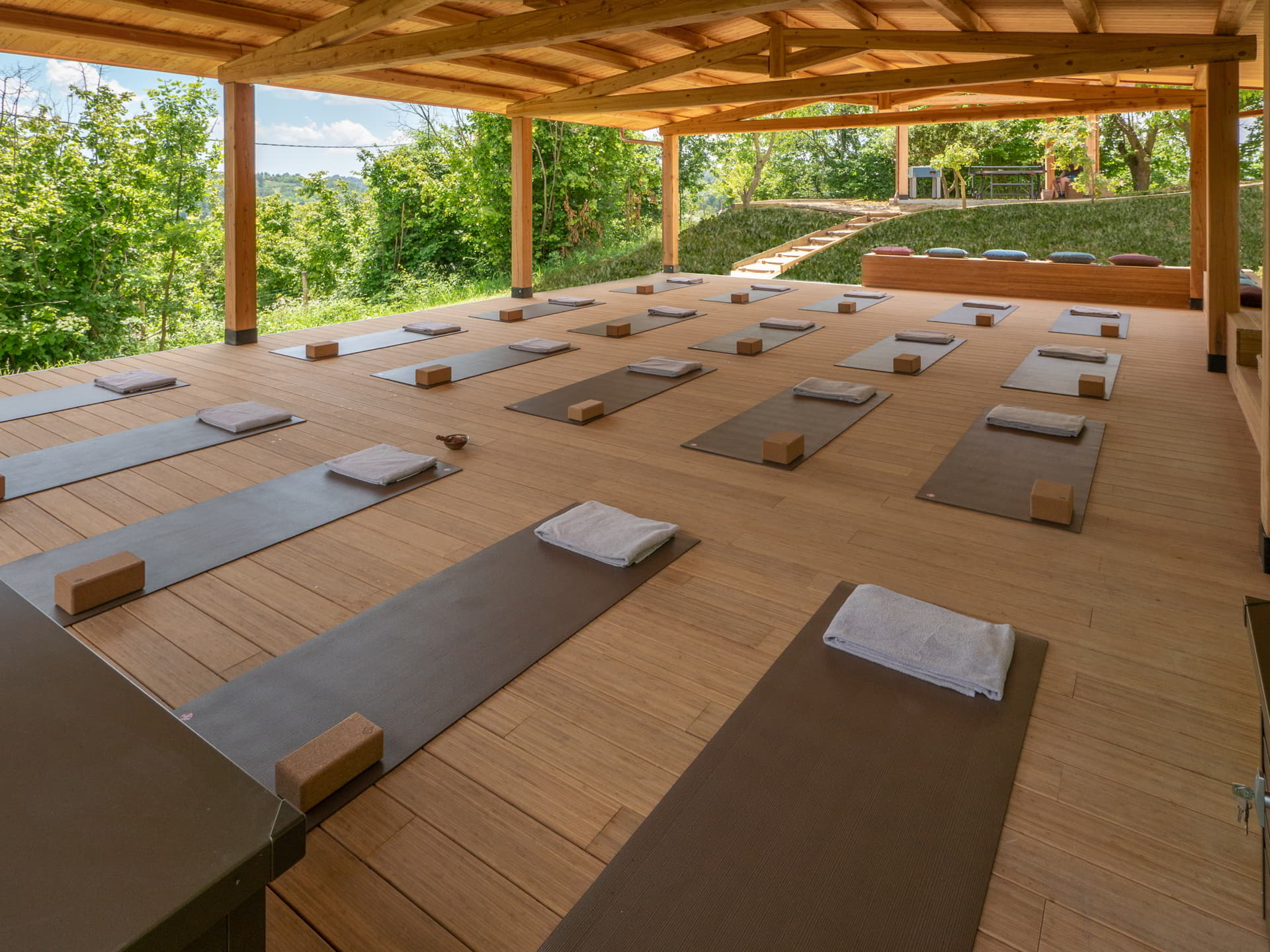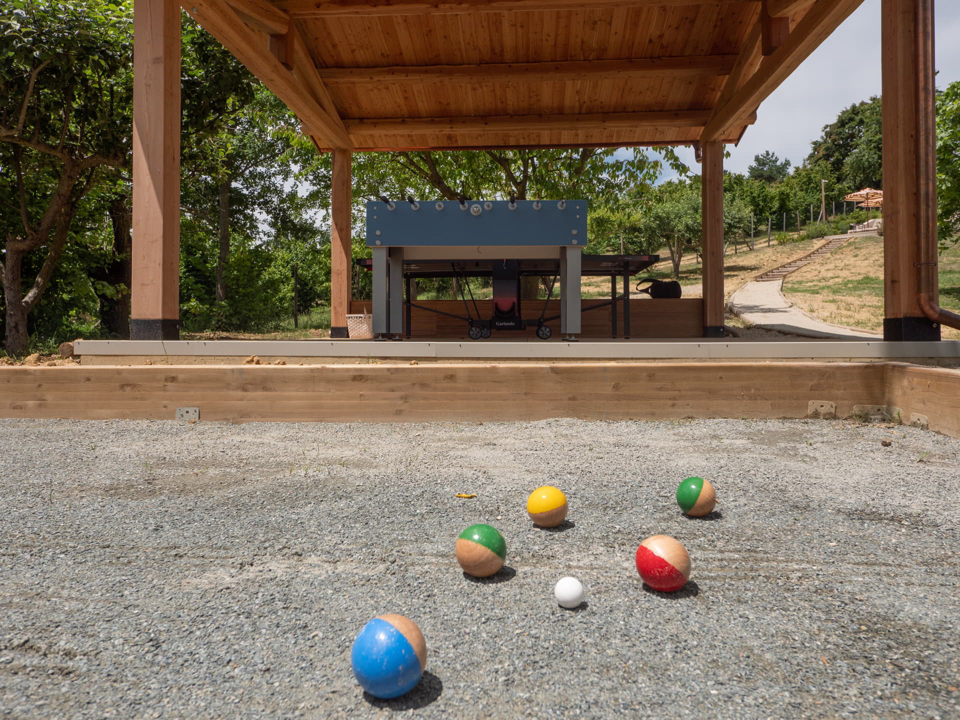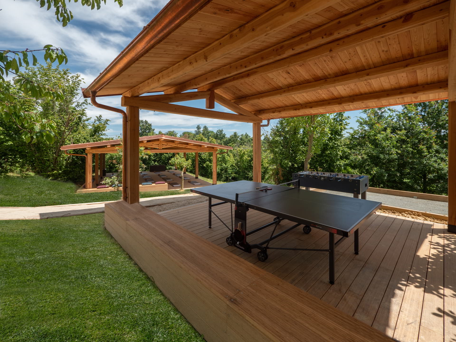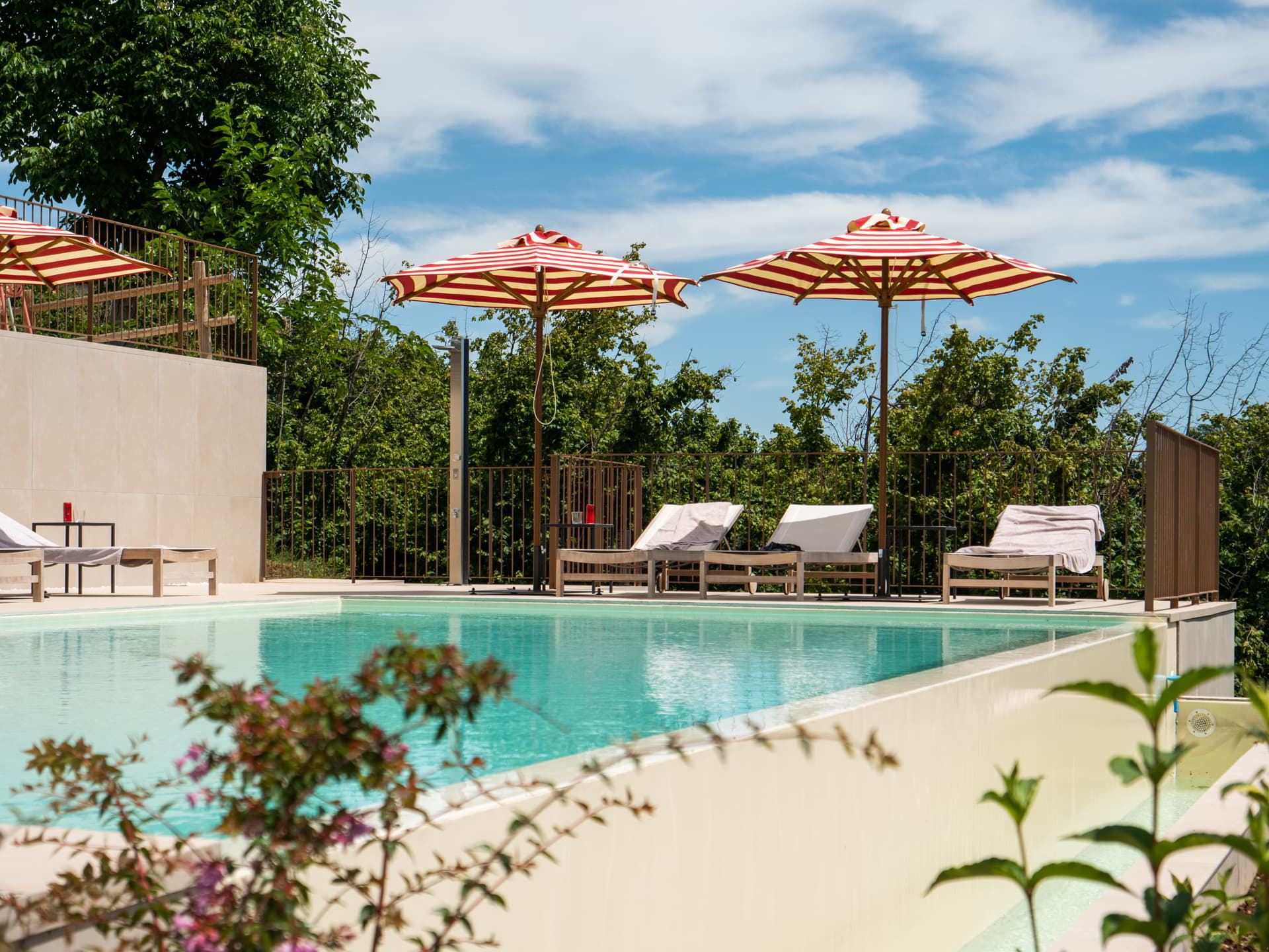 Between soft steam and warm water, the day flows at a gentle rhythm, preparing the soul to welcome peace. Light-filled rooms, the scent of wood and fresh flowers echo the energy of the outdoors. The courtyard can quickly turn into an echo of children’s laughter, shaded conversations or carefree games beneath ancient trees and pergolas.