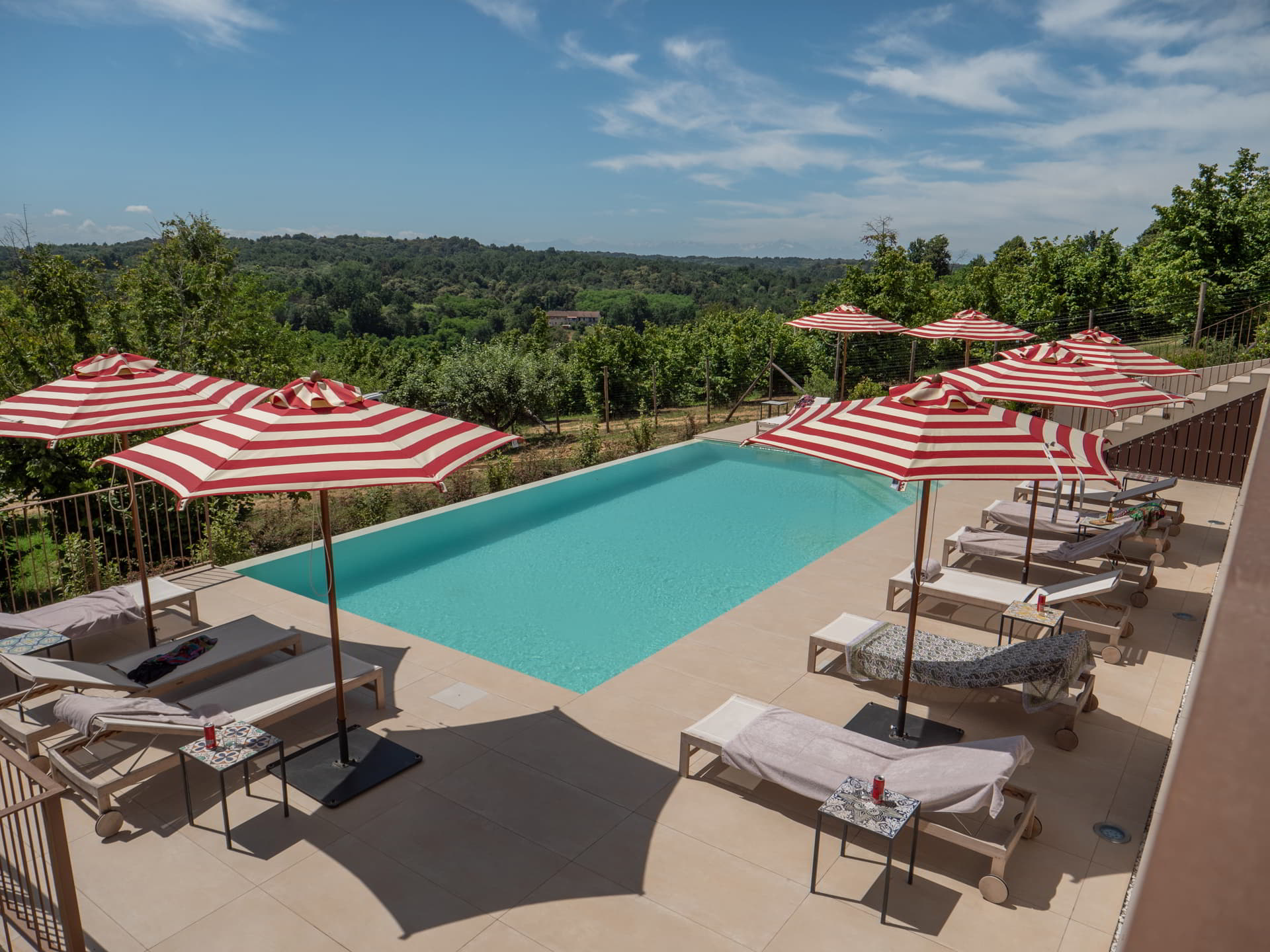 Swimming in the pool and gazing out towards the horizon, you have the strange sensation that the crystal-clear water vanishes into infinity, delicately dissolving away between sky and hills, giving rise to an almost fairy-tale effect.