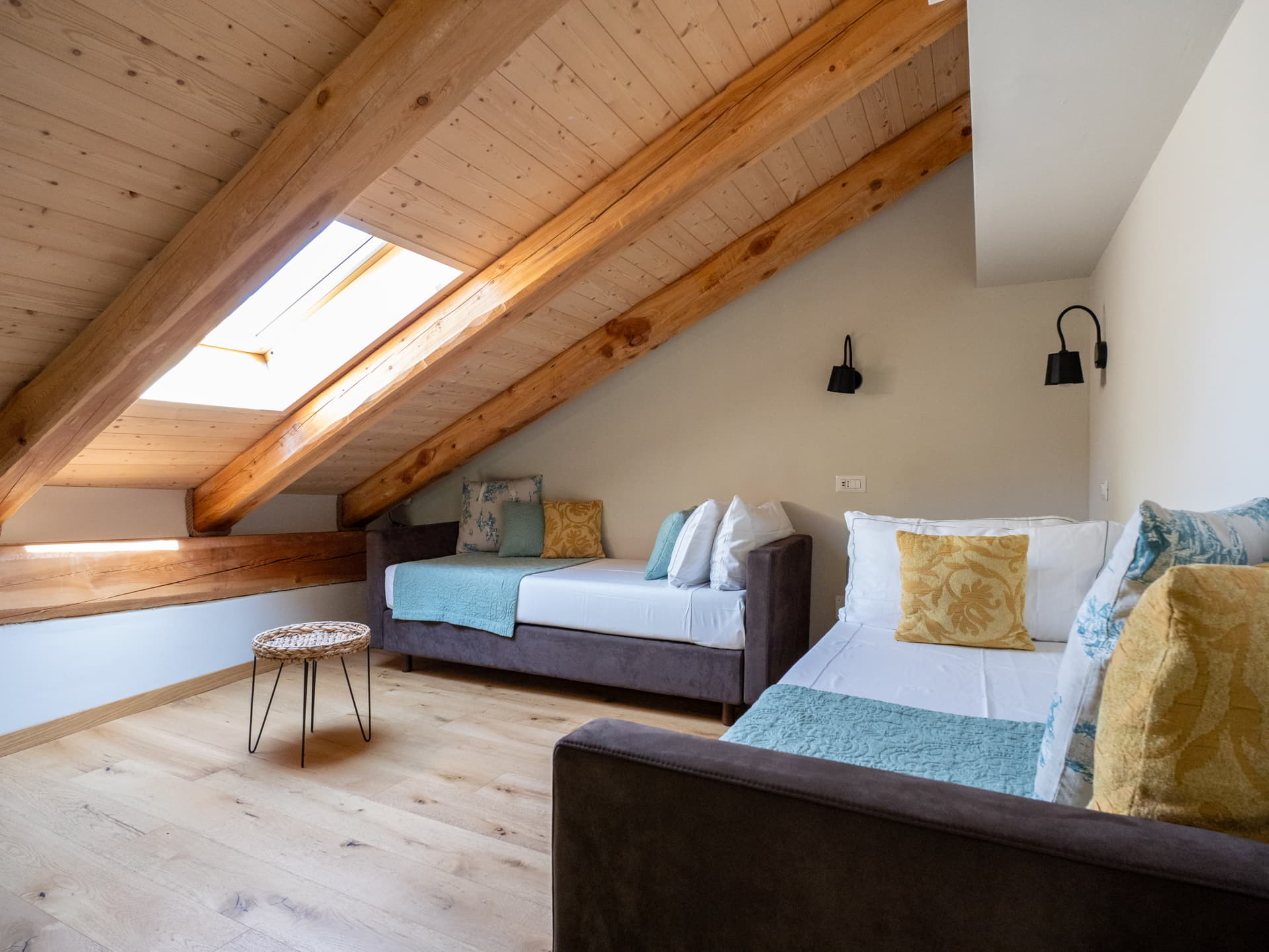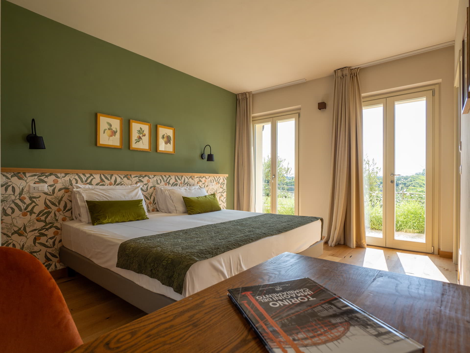 Its character emerges from a thoughtful blend of furnishings from different eras: countryside and vintage pieces paired with contemporary design, both on the ground floor and in the sleeping area. Each room takes its name from a UNESCO site in Piedmont, honouring the cultural and natural richness of these lands.